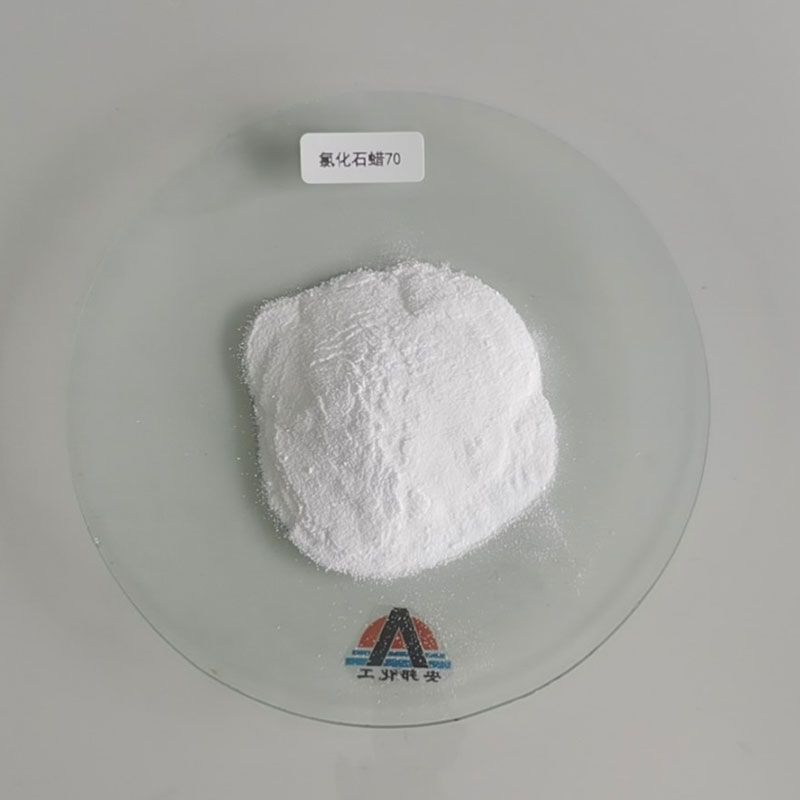 化石蠟-70或氯烴-70,外觀白色或淡黃色粉末或顆粒。化學穩定性好。不溶于水和低級醇,溶于礦物油、芳烴、氯代烷、乙醚、丙酮、酯類;耐氧化劑、酸、堿等作用有防水性能及抗紫外線等作用;能與許多合成及天然材料有良好的相溶性,在溫度達到170攝氏度以上開始微量降解反應,脫氯化氫,生成烯烴等物質,因化學結構幾乎完全飽和,具有優良的阻燃性、耐化學藥品性、相溶性、耐老化性和熱穩定性、電絕緣性。是一種綜合性能優良的添加型阻燃劑。并兼有防潮、抗靜電、抗軟化、抗壓縮、低揮發性;有潤滑和防滑的特點,有增韌、增粘和抗輻射作用,有防水,防蟲和防腐蝕功能。